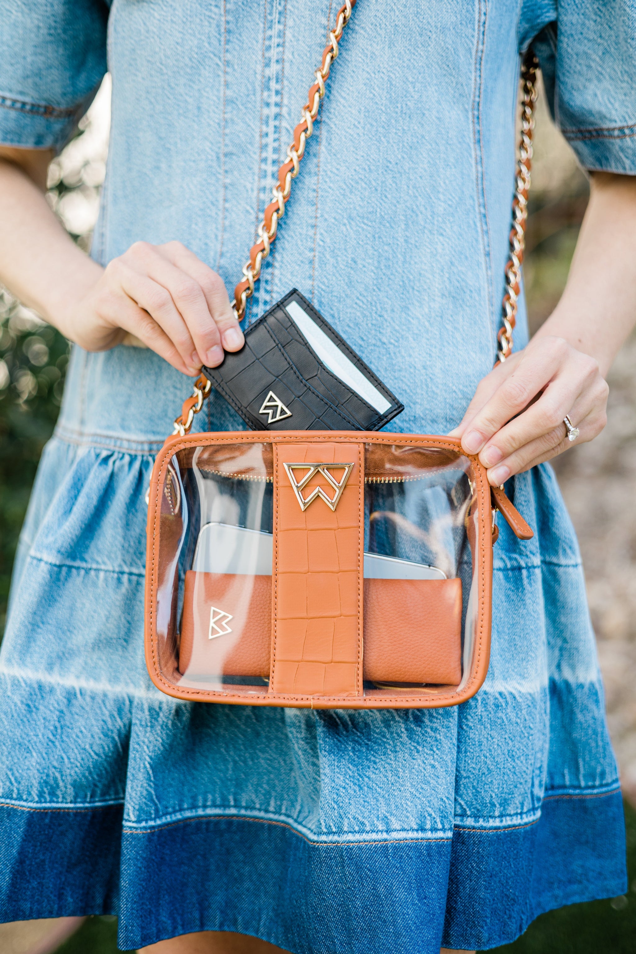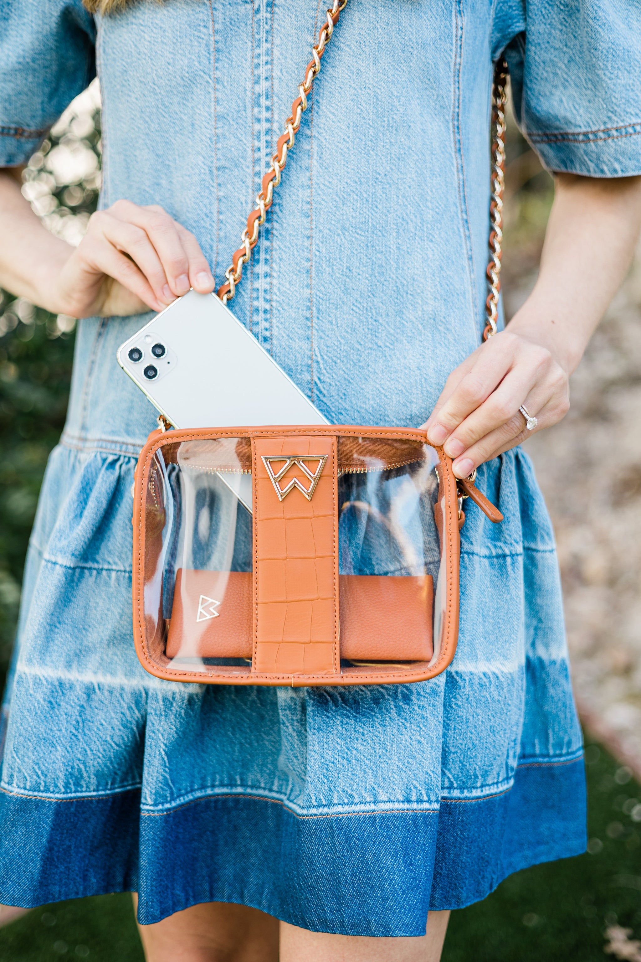 Are you IN THE CLEAR? We've pulled out the style playbook and designed stadium/event-approved clear handbags that won't cramp your style! Our Clear Mingle Mingle Mini complies with NFL/NCAA and other sports stadium/event venue handbag regulations [requiring a clear bag or a 4.5" x 6.5" handbag]. The only thing you will have to worry about is your team taking home the WYNNE!